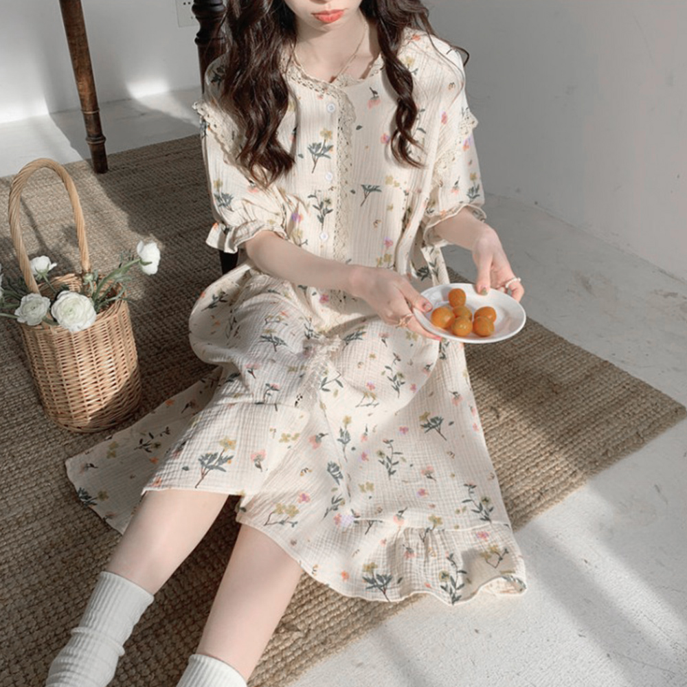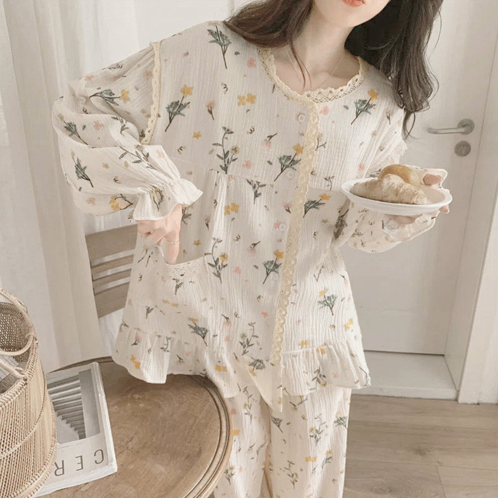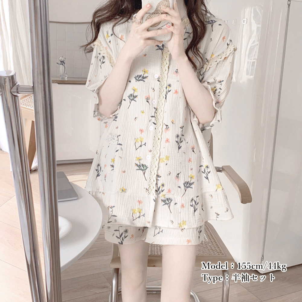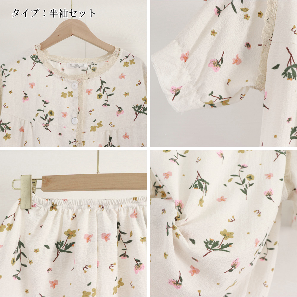 淡い色合いと美しい花柄が魅力的なサウナウェア対応ルームウェアセット。